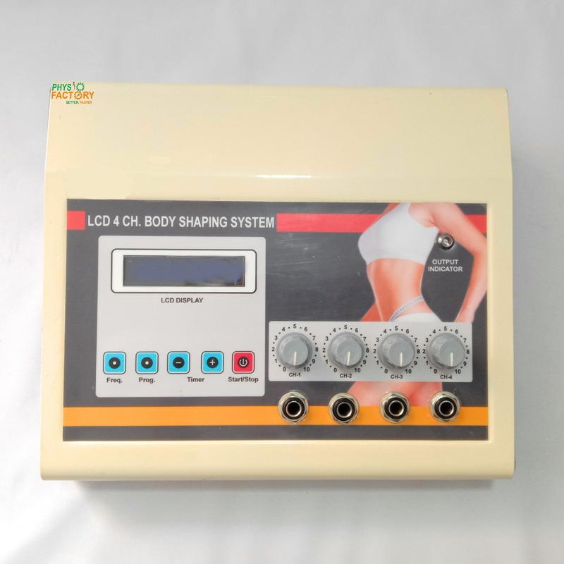 A professional 4-channel slimming device with LCD display for body contouring, inch loss, and muscle toning – housed in a durable metal body. The LCD 4 Channel Body Shaping Machine is an advanced slimming and physiotherapy system designed for body sculpting and inch loss. With a digital LCD display, customizable programs, and 4 output channels, this machine delivers effective muscle stimulation and fat reduction therapy. This version features a metal body for increased durability and long-term clinical use. Perfect for salons, slimming centers, and physiotherapy clinics. 🔧 Key Features: 4 Output Channels – Targets multiple body parts at once LCD Display – Easy-to-read interface for frequency, program, and timer Preset & Manual Programs – For various body shaping treatments Muscle Toning & Inch Loss – EMS-based stimulation Durable Metal Housing – Long-lasting and reliable User-Friendly Controls – Easy for professionals to operate ⚙️ Specifications: Channels: 4 Display: LCD Digital Body Material: Powder-coated Metal Functions: Frequency, Program, Timer, Start/Stop Applications: Slimming, Inch Loss, Muscle Toning, Physiotherapy Power: 220V, 50Hz Control Type: Knob & Digital Button Mix 🎯 Therapeutic / Slimming Uses: Fat reduction and inch loss Muscle stimulation and toning Post-pregnancy tummy firming Cellulite reduction Localized shaping of arms, thighs, abdomen
