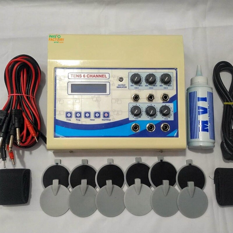 Clinic-grade 6‑channel TENS unit with LCD display, offering multi-area pain control, muscle relaxation, and customizable therapy modes for effective electrotherapy. Introducing the LCD 6‑Channel TENS Machine, a professional-grade electrotherapy device equipped with six independent output channels and a user-friendly LCD. This unit allows simultaneous treatment of multiple body parts—ideal for physiotherapy clinics, sports centers, and home care setups. Capable of delivering adjustable frequency and intensity, it effectively blocks pain signals, promotes endorphin release, and supports muscle relaxation and rehabilitation during acute and chronic pain episodes 🔧 Key Features: 6 Independent Channels for multi-site therapy Clear LCD Display – tracks mode, frequency, timer, intensity Adjustable Settings: frequency & intensity customizable per channel Multi-Therapy Modes: continuous, burst, auto programs Portable Fiber/ABS Body – rugged and easy to handle Timer Function with auto shut-off and alert tone ⚙️ Specifications: Power Supply: 220 V AC, 50/60 Hz Channels: 6 independent channels MeddeyGo.com Display: LCD screen Intensity Range: Adjustable to patient comfort Modes: Continuous, burst, sweep, automode Timer: 1–60 minutes programmable Body Material: Durable fiber/ABS Portability: Lightweight and compact 🧠 Therapeutic Benefits: Blocks pain via pain gate mechanism using Aβ fiber stimulation Carex + Promotes endorphin release with low-frequency settings Customized multi-site therapy improves efficiency and convenience Safe, non-drug pain relief, ideal for arthritis, back pain, sports injuries
