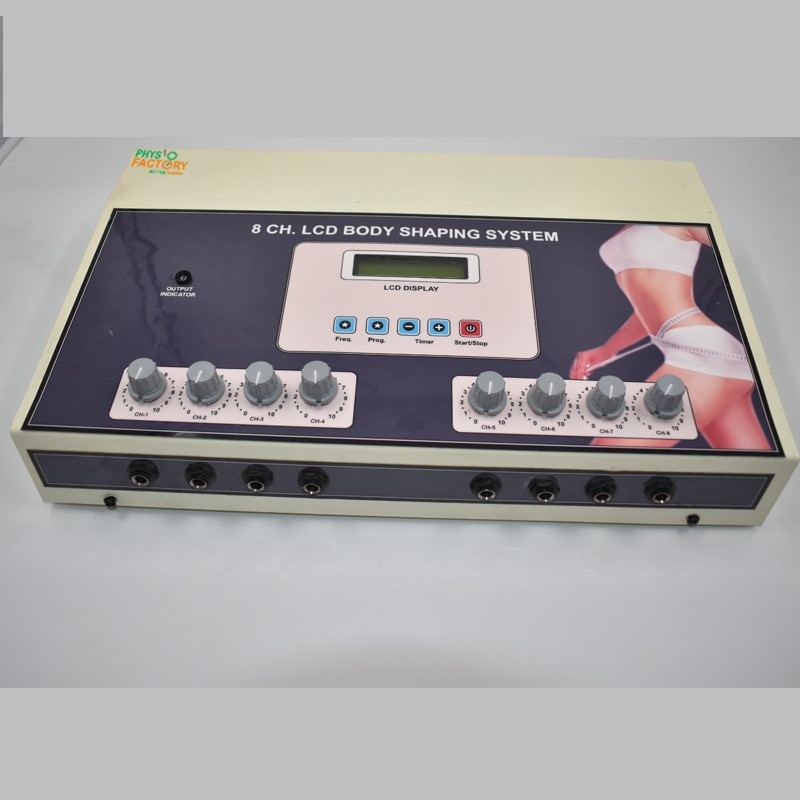 Advanced 8 Channel Body Shaping Machine with LCD Display for professional slimming, inch loss, and body contouring therapy. The 8 Channel LCD Body Shaping System is designed for professional clinics and slimming centers to help clients achieve targeted inch loss and improved body shape. It uses electrical muscle stimulation (EMS) to tone muscles and reduce fat in stubborn areas. The LCD interface ensures ease of use, while the 8 independent channels allow simultaneous treatment of multiple areas. Ideal for abdomen, thighs, arms, hips, and more. 💡 Key Features: 8 Output Channels for multi-area treatment LCD Display for easy operation Adjustable frequency and intensity levels Individual knobs for each channel Suitable for both men and women Compact and user-friendly design Helps in toning, tightening, and inch loss ⚙️ Specifications: Channels: 8 Display: LCD Output Mode: EMS (Electrical Muscle Stimulation)