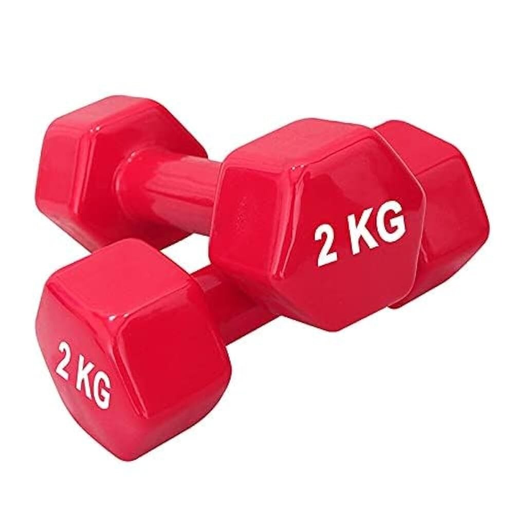 Durable 2 kg dumbbells perfect for strength training, physiotherapy, and home workouts. Compact, easy to grip, and coated for safety. 📝 Full Description: These 2 Kg Dumbbells are ideal for beginners, physiotherapy patients, and fitness enthusiasts. Made with a solid cast iron core and coated in non-slip vinyl, they provide a comfortable grip and prevent floor damage. Great for toning muscles, improving endurance, and rehabilitation exercises. Their compact size makes them perfect for home use, clinics, or carrying on the go. Use them for lightweight workouts, rehab training, aerobics, or warm-up exercises. 🔧 Key Features: Weight: 2 Kg each (sold as pair or single) Material: Cast Iron with Vinyl Coating Non-slip Grip: Safe and easy to hold Anti-roll Design: Hex shape prevents rolling Easy to Clean: Sweat and dust resistant Bright Color Coding: Quick weight identification Compact & Portable 🎯 Applications: Physiotherapy and Rehab Muscle Toning and Endurance Arm and Shoulder Exercises Warm-up & Aerobic Training Home Fitness and Gym Workouts