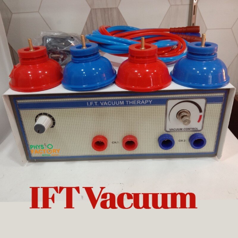Innovative IFT vacuum therapy unit with adjustable suction cups—combining negative pressure and interferential therapy for improved circulation, pain relief, and lymphatic drainage. Elevate your physiotherapy clinic with this IFT Vacuum Therapy Machine, blending vacuum suction and medium-frequency interferential therapy. Suction cups apply gentle negative pressure to improve local blood flow, reduce muscle tension, and support lymph drainage, while the IFT mode provides deep analgesic effects with minimal skin discomfort. Ideal for treating muscle soreness, edema, cellulite, burn scars, and rehabilitation of joints. Its therapy method is based on proven intermittent vacuum techniques like those used in NASA’s lower body negative pressure research 🔧 Key Features: Vacuum Suction Cups: Customize suction intensity for targeted muscle relaxation Interferential Therapy: 2–4 kHz carrier frequencies for deep pain relief Dual Output Channels: One for vacuum, one for IFT Adjustable Controls: Independent adjustment of suction pressure and IFT intensity Compact & Clinic-Friendly: Portable steel housing, easy to operate Non-Invasive Treatment: Ideal for edema, cellulite, burn scar management, and improved tissue healing