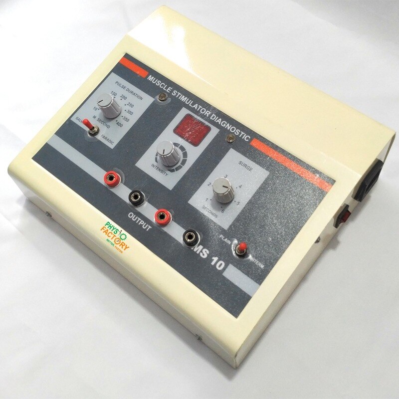 Advanced 10-channel Muscle Stimulator (MS-10) for diagnostic and therapeutic use. Durable metal body ensures high performance and long life. The MS-10 Diagnostic Muscle Stimulator is a professional-grade electrotherapy machine designed for muscle strengthening, rehabilitation, pain management, and diagnostic analysis. With 10 output channels, it allows simultaneous treatment on multiple body parts, making it ideal for physiotherapy clinics and hospitals. The machine is housed in a rugged metal body, ensuring durability, reliability, and stable output. It supports various stimulation modes suitable for muscle toning, re-education, and neuromuscular rehabilitation. 🔧 Key Features: 10 Output Channels – Treat multiple areas at once Diagnostic Capability – Ideal for nerve/muscle response testing Customizable Intensity Control – Per channel Metal Body Construction – Strong, durable & long-lasting Smooth Frequency Output – Ensures patient comfort Compact Panel with Knob Control – Easy to operate ⚙️ Specifications: Channels: 10 Independent Output Channels Body: Heavy-Duty Metal Cabinet Modes: Faradic / Galvanic / Interrupted Galvanic Pulse Width: Adjustable Frequency Range: 1–100 Hz Timer: 0–60 Minutes Output: Isolated for each channel Input Voltage: 220V AC ±10%, 50Hz 🎯 Applications / Uses: Muscle Strengthening & Toning Neuromuscular Re-education Post-Stroke Recovery Sports Rehabilitation Facial Palsy / Foot Drop Muscle Atrophy Prevention Diagnostic EMG Support (non-invasive)