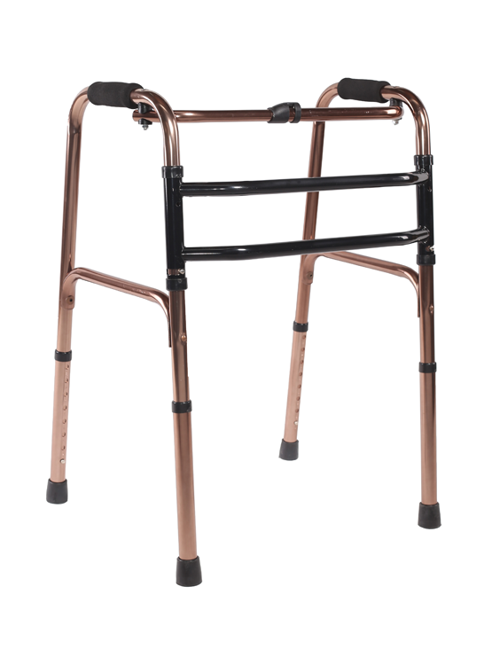 Height-adjustable reciprocal walker allows natural walking motion, providing stability, support, and independence for elderly and rehab patients. This Reciprocal Walking Frame is designed to assist individuals with limited mobility due to age, injury, or surgery. Unlike standard walkers, the reciprocal design allows each side to move independently, helping the user walk more naturally and comfortably. Made from lightweight aluminum, it is height adjustable and foldable, making it easy to carry and store. Its anti-slip rubber tips ensure a strong grip on all surfaces, preventing slips and falls. Ideal for use in homes, hospitals, and rehab centers, this walker promotes independent mobility and helps in early recovery. 🔧 Key Features: Reciprocal design for natural walking pattern Lightweight aluminum frame – easy to handle Height adjustable – customizable for all users Foldable structure for portability Comfortable foam hand grips Non-slip rubber tips for safety Sturdy and rust-resistant finish ⚙️ Specifications: Material: Aluminum alloy Height Range: Adjustable (Approx. 75 – 95 cm) Weight Capacity: Up to 100 kg Design: Reciprocal & Foldable Weight: Approx. 2.5 – 3 kg Application: Elderly, Post-op recovery, Disabled patients 🎯 Applications: For elderly and disabled individuals Rehabilitation post-surgery or injury Encourages natural gait and balance Increases walking independence Used in homes, clinics, physiotherapy setups